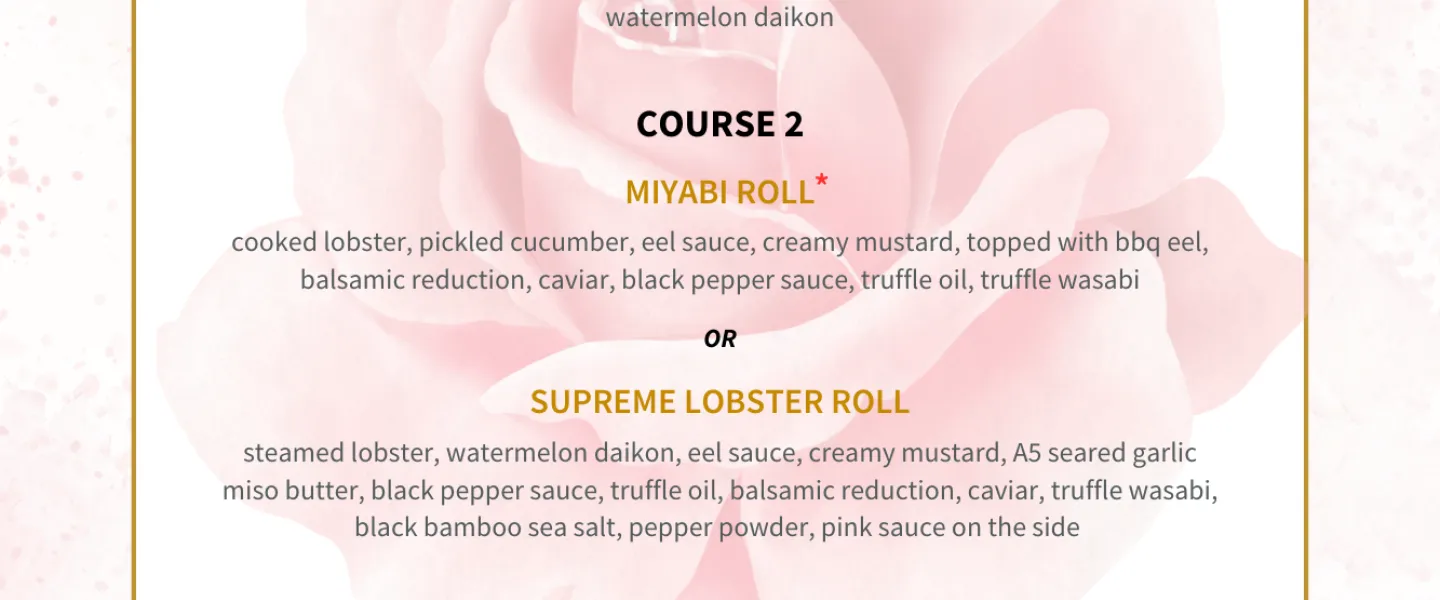 Celebrate love all week long with our four-course prix fixe menu for $99 per person, February 9th to 17th. Includes a complimentary glass of Champagne or a non-alcoholic hibiscus bubble.