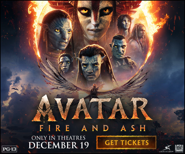 Avatar: Fire and Ash, the third film in the phenomenally successful Avatar franchise, opens exclusively in theatres worldwide December 19, 2025. James Cameron takes audiences back to Pandora in an immersive new adventure with Marine turned Na’vi leader Jake Sully (SamWorthington), Na’vi warrior Neytiri (Zoe Saldaña), and the Sully family.