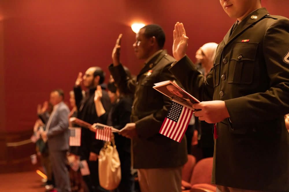 Observe a moving ceremony in which people from across the world become U.S. citizens and hear a concert by the United States Air Force Strings.