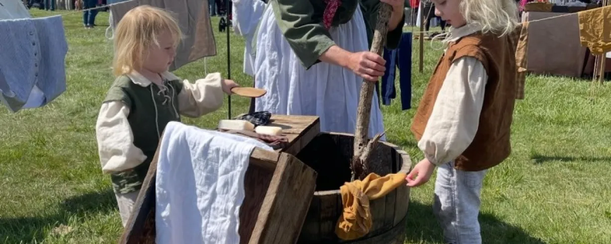 Watch wheat treading demonstrations in George Washington's innovative 16-sided threshing barn, and learn how laundry was done in the 18th century.