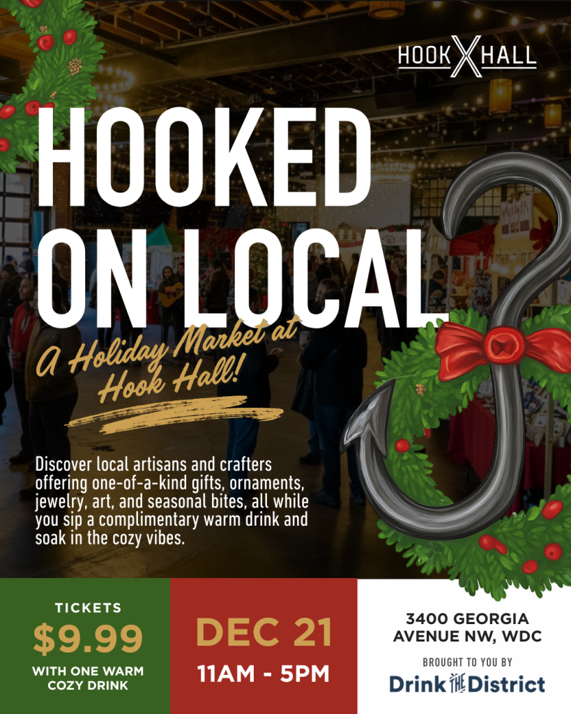 Celebrate the spirit of the season — DC-style! Hooked on Local: A Holiday Market at Hook Hall brings together the city’s most talented artisans, makers, and creators for a cozy, community-driven holiday shopping experience.