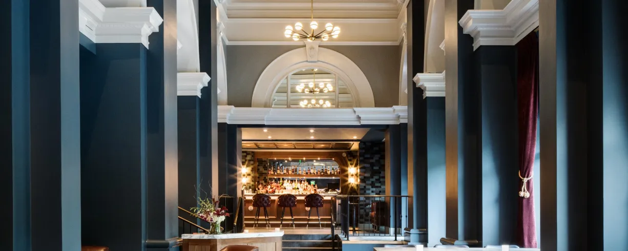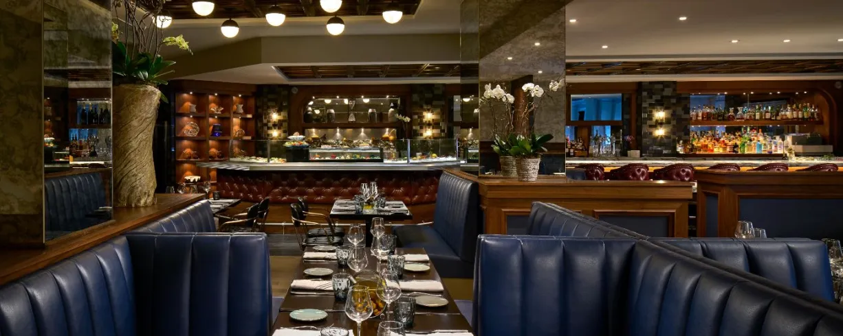 Located inside the Darcy, Gerrard Street Kitchen blends global cuisines, highlighting flavors of Japan, Morocco, and South Asia alongside British and Indian culinary fare. The Gerrard Street Kitchen menu features appetizers that include Paratha Tacos and Thai Eggplant Jenga. Signature entrées include Chicken Tajine, Beef Wellington, and Robata Lamb Mishkaki, with a number of dishes completed at diners’ tables for a shareable and interactive experience; the Bibimbap with Hamachi sizzles as it cooks in pottery that has been heated over an open flame as the server combines the rice, egg, and Gochujang sauce. Meals are enhanced by seasonal creative craft cocktails, mocktails, and a robust beer and wine selection. The restaurant serves breakfast daily as well as extensive Saturday and Sunday brunch service with bottomless Bloody Mary and Mimosa bars.