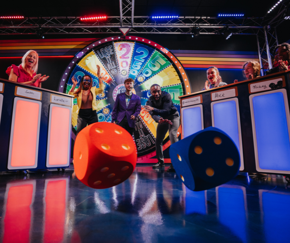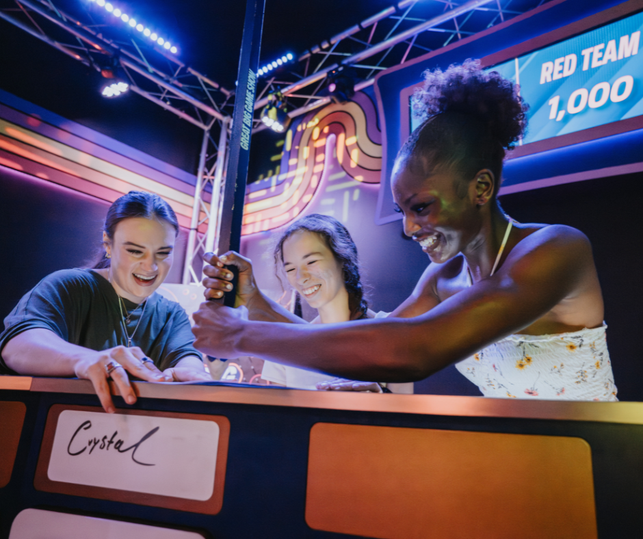 Great Big Game Show, brought to you by The Escape Game, is a live-hosted game show experience. Two teams come on stage to face off in a battle for points and glory!
